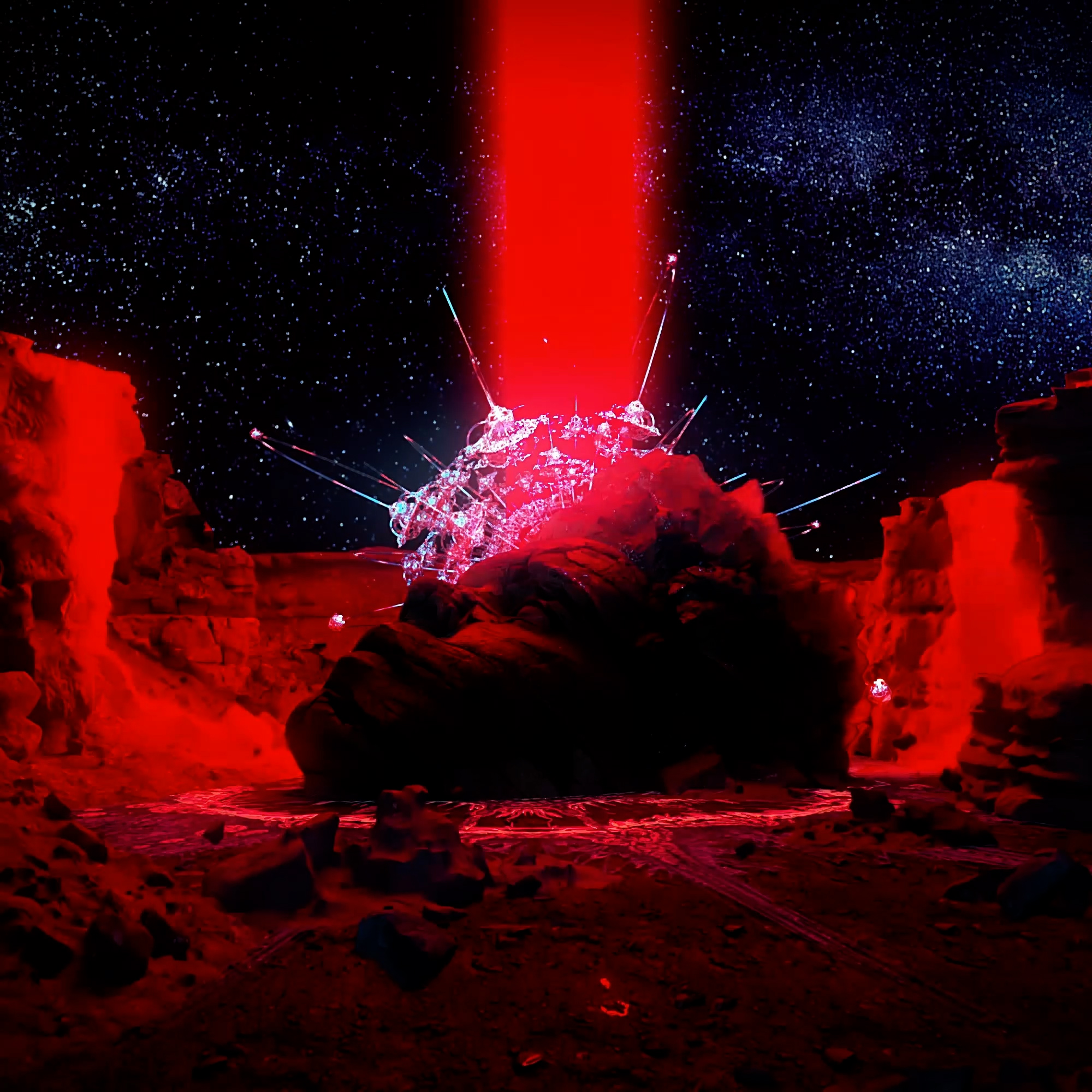Through a shared love of the dialogue between neo-futurism and dystopian narratives, and seeing natural forms represented in digital space, The Weeknd and Strangeloop Studios developed a common language of myth and culture in popular art. The pieces in Acephalous explore those key sentiments: a “source” sculpt of The Weeknd, rendered in a vacant void, and discovered in various “artifacts” and “remnants” left behind by the passage of time. The value of the art is preserved not only in the “actual” material or image, but also in the meaning and memory signified by the image.